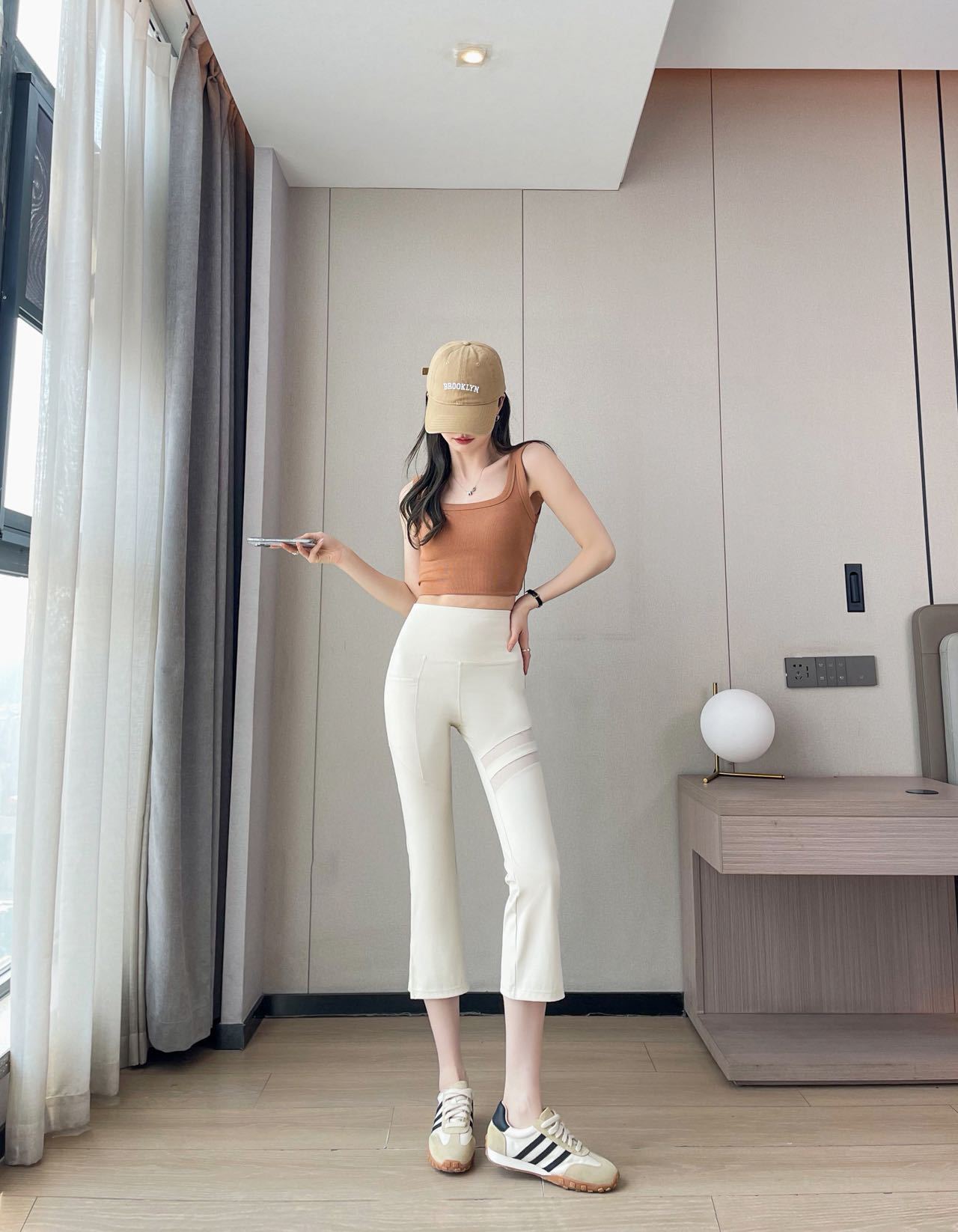 Eight-Point Mesh Slit Straight-Leg Pants 2025 Women's Outerwear Side-Pocket Shark Pants Slimming Yoga Pants High-Elastic Slim Fit
