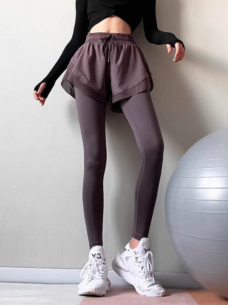 Sports Pants Women's Tight Fake Two-piece Quick-drying Running Fitness Anti-naked High Waist Hip-lifting Dancing Yoga Pants